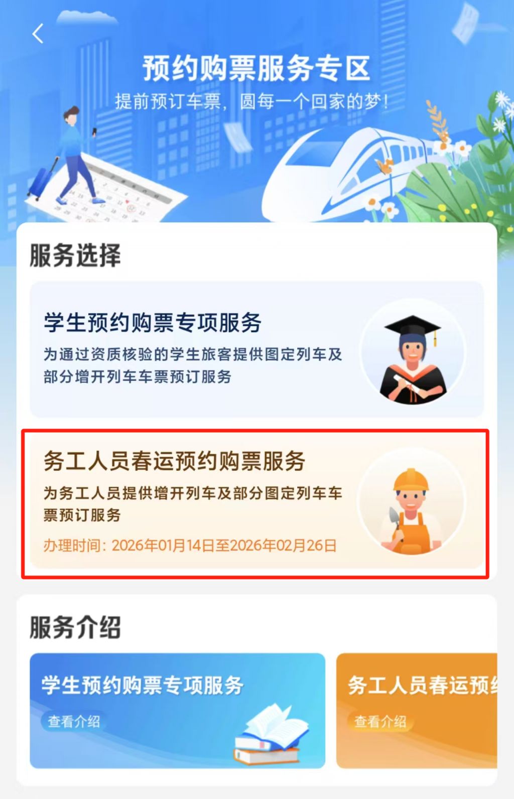 2026年春运12306务工人员预约购票指南